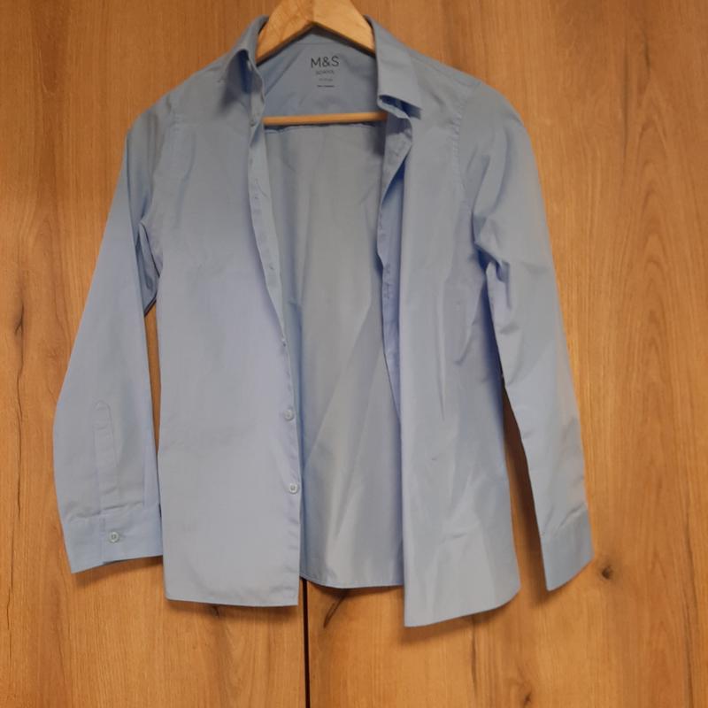 Рубашка голубого цвета до длинного рукава. ПОГ44см, длина 61см, длина рукава 55см. Указано на 12-13 лет