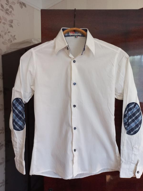 Базовая белая рубашка с накладками на локтях для мальчика 158 см выполнена в Италии
