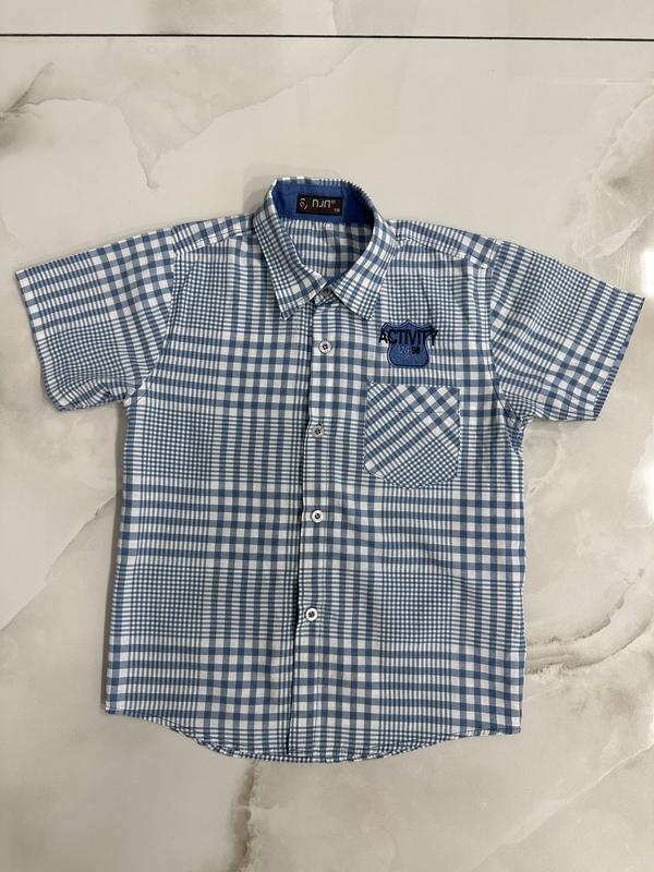 Гарна сорочка на ґудзиках у клітинку, стан ідеальний. Розмір 116, заміри на фото.