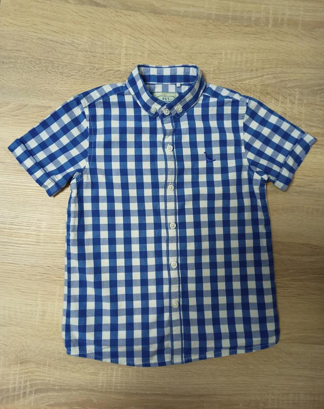 Рубашка в клетку для мальчика 4-5 в идеальном состоянии из качественного плотного хлопка.Стан Длина рубашки 46 см.От одной подмышки до другой 34см.Плечи 28,5 см.