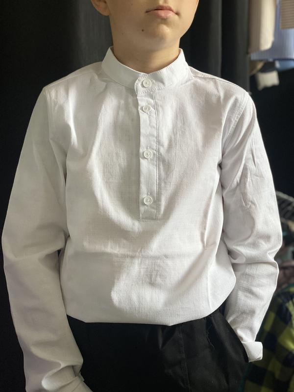 Готовимся в школу 📚 Белая рубашка для мальчика на пуговицах. Смотрится очень стильно на красиво 😻 Размеры в наличии: 122, 146, 152 Цена: 770 грн Состав: 85% льна, 15% полиэстер
