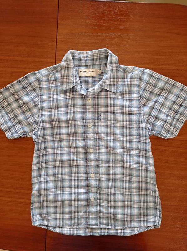 Качественная рубашка детская от известного бренда Tom Tailor, р. 128 в клетку. Спереди есть карманчик. Замеры: ПОГ-39см, длина - 53см, плечи- 31см, ширина рукава- 14см.