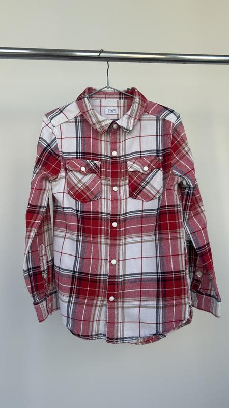 Хлопковая байковая рубашка от F&F. Стан новой вещи. Застежки - кнопки. Размер 7-8 лет. Рост 128 см. Длина по центру застежки 46 см, длина по центру спинки 54 см, длина рукава 43 см, полуобхват груди 35 см