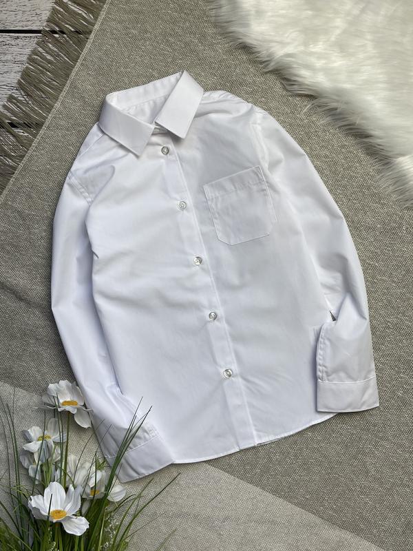Белоснежная рубашка 7-8 лет, состояние новой 65 полиэстр 35 коттон Д 51, пог 39, рукав 45