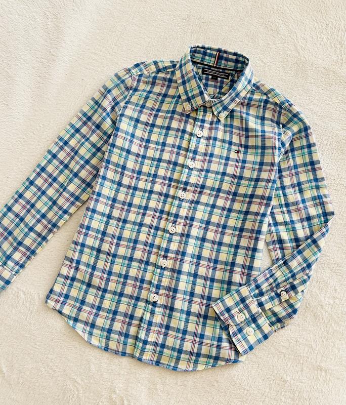 Легкая коттоновая рубашка в клетку от TommyHilfiger Размер 128 По грудей 38см Рукав 47см Длина 53см 100% котон