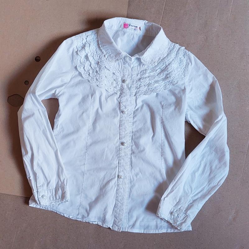 Школьная рубашка на девочку 7-8 лет, украшена кружевом, длина рукава 47 см Бавовна