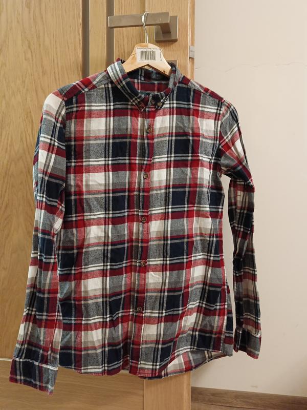Рубашка в клетку на мальчика 14 лет, хлопок, весна, на пуговицах.