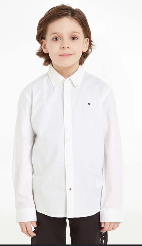 Дитяча біла сорочка Tommy Hilfiger, стан ідеальний, вдягнута 1 раз, розмір 130см-250 Блакитна сорочка Mango , стан ідеальний( випрана але не носили)на 5 років 110см-190