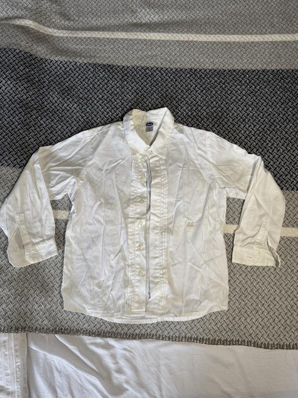 белая детская рубашка chicco Длина 45 Ширина 36 Рукав 37 Есть небольшой дефект - желтые пятнышки в конце одного рукава, но можно отстирать бельем