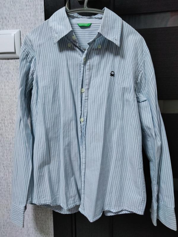 Рубашка в идеальном состоянии. Рост 122-134. Рукава можно подвернуть и пристегнуть. Тканина бавовна. Хорошее качество. Фирма Benetton.