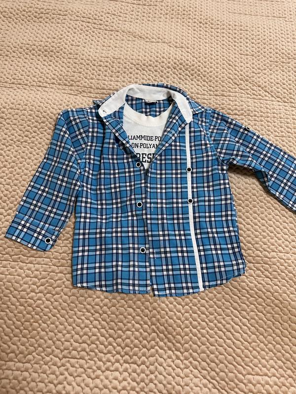 Рубашка с имитацией футболки Плечи 33 Длина 46 Ширина 35 Рукав 38/31