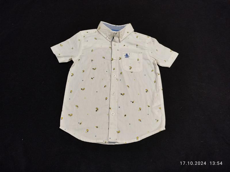 Очень классная рубашка Penguin by Munsing wear on original в отличном состоянии на ребёнка 3-4 года. Длина изделия по спинке от плеча 42 см, полуобхват груди 32 см, от плеча до плеча 28 см. Ткань хлопок, плохо тянется. Модель 5199