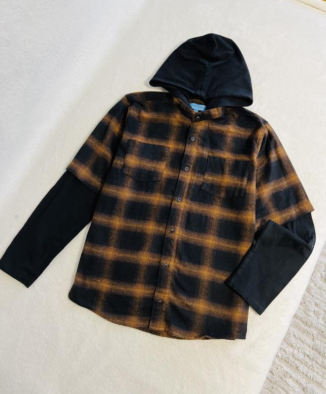 Рубашка с капишоном Размер 13 на 158см Рубашказ из тонкой байки, рукава и капишон трикотаж По грудей 50см Рукав 58см Длина 64см ☘️