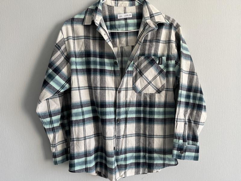 Рубашка в клетку Zara в зелено- серых оттенках. В хорошем состоянии