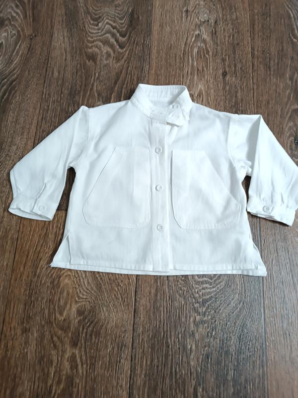 Размер 80. В идеальном состоянии, одевали только для фото на 1 год. Купувала за 450, продаю за 300. Рубаха просто бомба, выглядит стильно, оверсайз. ткань - не толстый картон. Отправлю по любой почте.