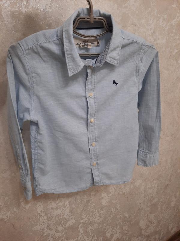 рубашка на мальчика хорошего качества и в идеальном состоянии около 5-6 лет. (см по замерам). Цвет камерой не передавливается ( он нежно голубой). Тканина макесенька, схожа на льон. замеры: спинка: 47см ширина 35 см рукавчик 37см