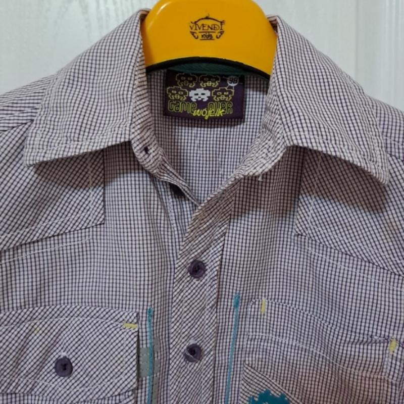 Ну, очень модная, польская рубашка с длинным рукавом для мальчика двух лет. Цвет- сиреневый, в мелкую клетку. Состояние- отличное. Замеры: Длина- 43 см. ПОГ- 34 см. Плечи- 32 см. Рукав от плеча- 32 см.