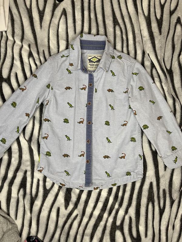 голубая рубашка с динозавриками для мальчика, нет недостатков, не носили. 🌸заходите на страницу, там еще много интересного