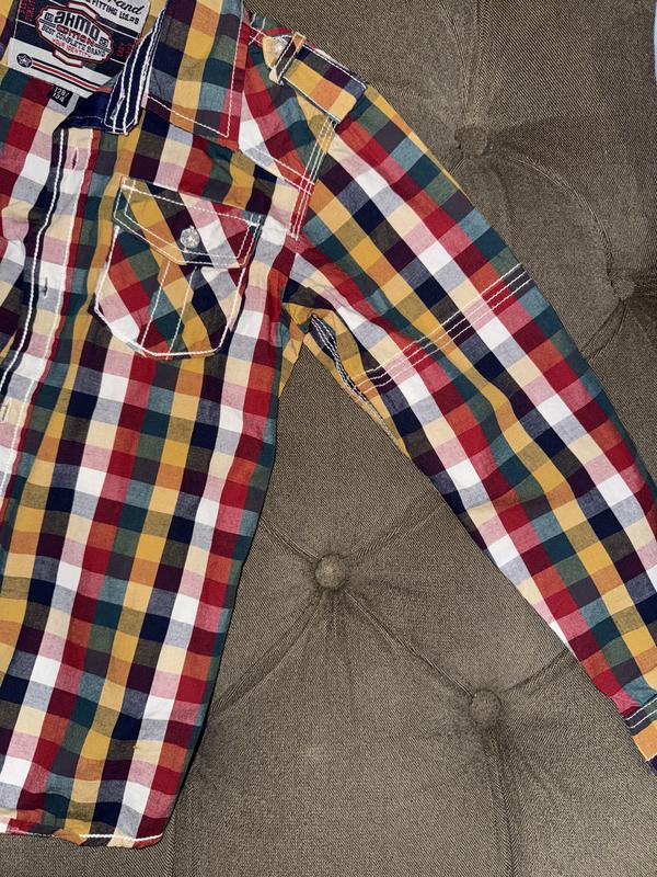 Детская рубашка в клетку,фирменная Замеры, присмотритесь ниже: Грудь:35 Плечи:33 Рукав:47 Длина:52