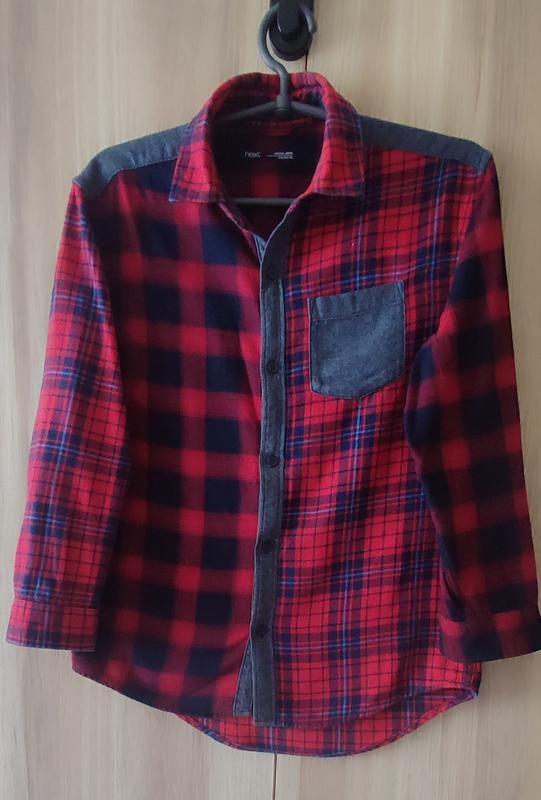 *Сорочка байковая от бренда Next на 10-11 лет, 140 см. Ориентируйтесь по замерам на фото. Рубашка теплая,байка толстенькая, мягкая. Состав ткани натуральный,100 % cotton/хлопок/мальчик. В идеальном состоянии, одевали несколько раз. Длина рукава 47 Длина изделия 59 Плечи 40