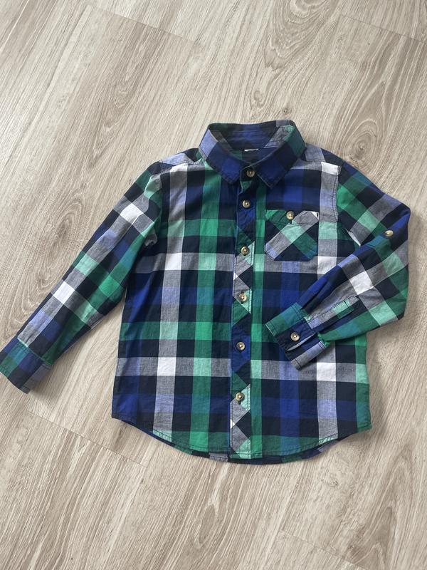 Рубашка для мальчика 4-6р., смотрите по замерам на фото! Стан идеален. Натуральная ткань. Рукав можно подвернуть и сделать коротким.