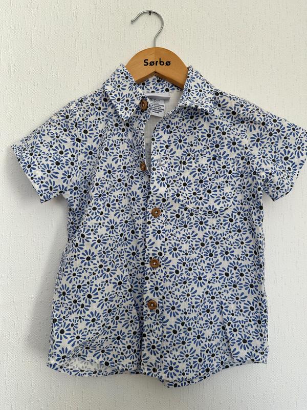 Замечательная, стильная, легкая рубашка для мальчика на жаркую пору. Состояние новой вещи. Размер 98 Замеры: Длина 41 см Ширина 34 см Плечи 27 см