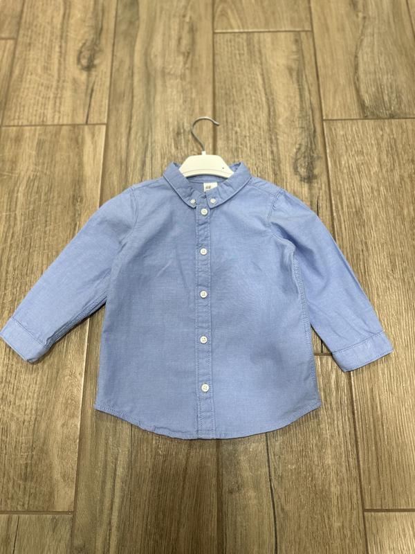 Классная базовая рубашка от H&M, голубой цвет, 100% коттон, размер 1,5-2роки(92см), классно будет под белую футболку, очень стильная и качественная, состояние идеальное