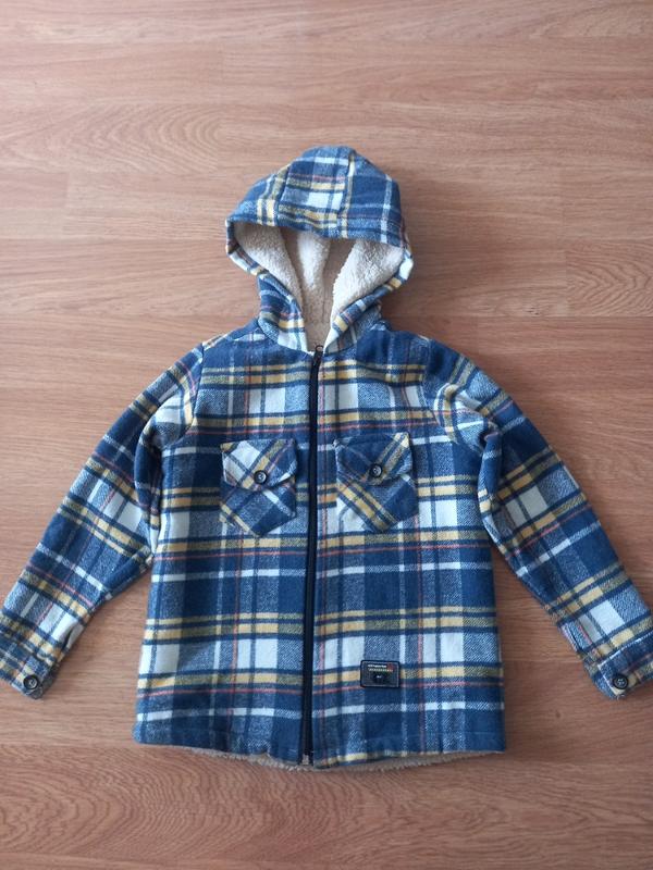 Сорочка тепла для хлопчика, 4-5 років, з капюшоном та карманами спереді. Стан ідеальний, всі заміри на фото.