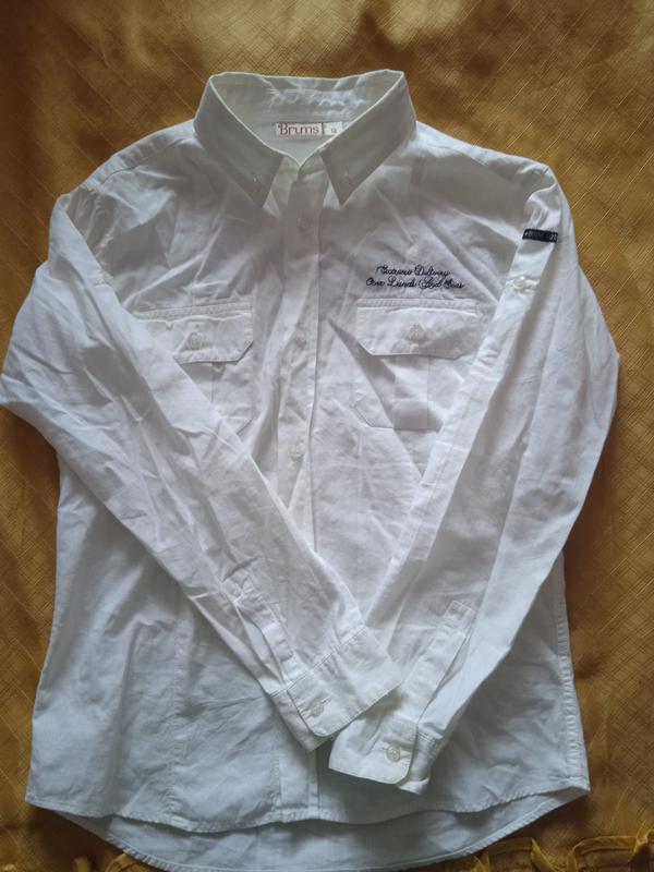 белая рубашка с карманами,тая специальной пуговицей, чтобы приоткрыть и пристегнуть рукава. Длина 57см, ширина под руками 44см, рукав 51см, ширина плеч 39см.