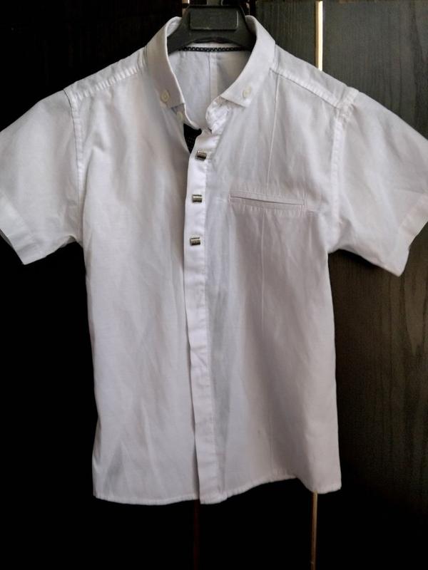 Брендовые белые рубашки с коротким рукавом на 6 летнего мальчика для школы. Состав полиэстер 70% и котон 30%. В отличном состоянии на выбор.