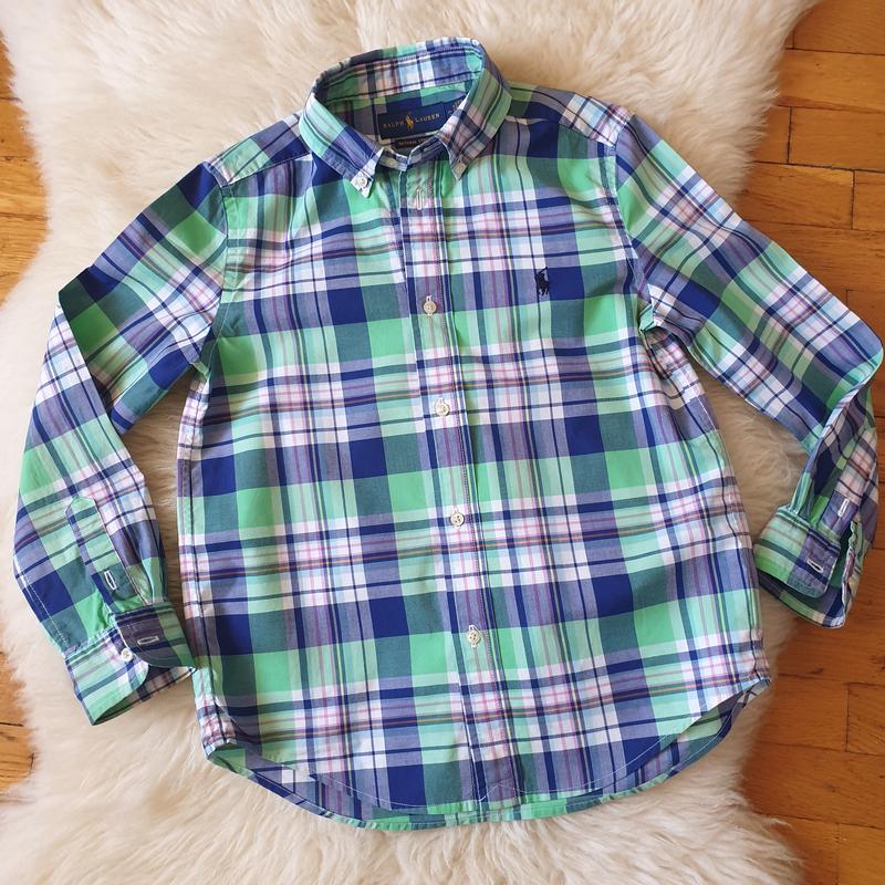 Рубашка в клетку Ralph Lauren. В отличном состоянии, хлопок. На 7 лет, замеры на фото.