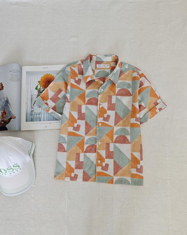 легкая рубашка от Zara для мальчика 8-9 лет на рост 130 см, ПОГ 43 см, длина 53 см