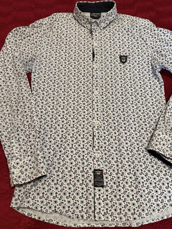 Ідеально нарядна сорочка на худішого хлоприна на ріст 158-165 може бути і вище,орієнтуйтеся на заміри Рукав 59см під руками 45см від плеча до плеча 40см довжина 65см