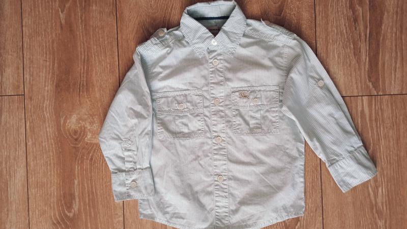 Рубашка белая в голубую полоску,оригинал.Длина 42 см,рукав 30 см (подворачивается на более короткий), ширина внизу 33 см.