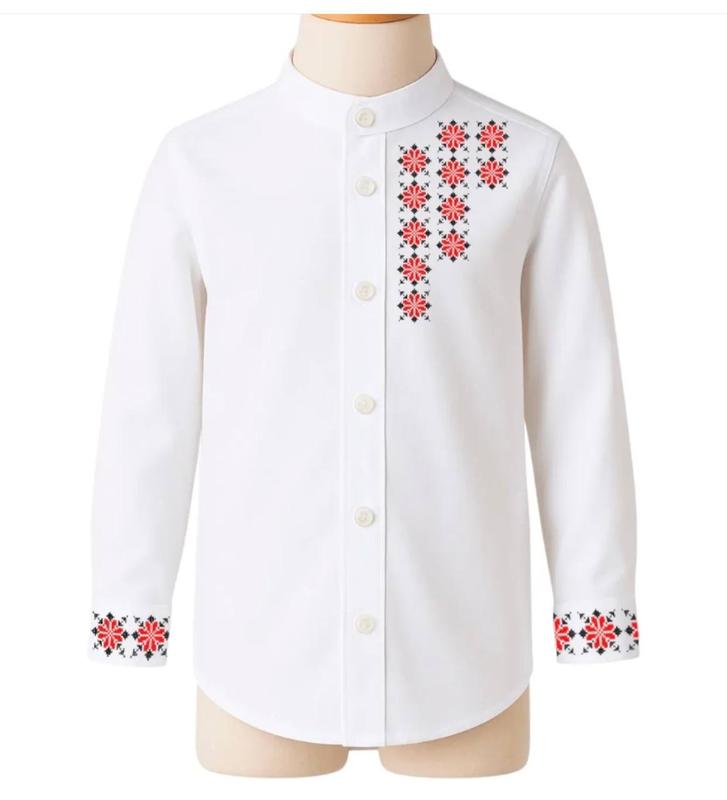Дитяча сорочка на хлопчика Сорочкова тканина, малюнок - сублімаційний друк, стилізований під вишивку. Розміри 116, 122, 128, 134, 140, 146, 152 Тільки новою поштою, повна оплата, є обмін та повернення. Заміри: ➡️116 зріст: ОГ - 74 см. Рукав - 44 см. Довжина по спині - 49 см. Плечі - 26 см. ➡️122 зріст: ОГ - 76 см. Рукав - 46 см. Довжина по спині - 51 см. Плечі - 28 см. ➡️128 зріст: ОГ - 80 см. Рукав - 48 см. Довжина по спині - 54 см. Плечі - 30 см. ➡️134 зріст: ОГ - 82 см. Рукав - 50 см. Довжина по спині - 55 см. Плечі - 31 см. ➡️140 зріст: ОГ - 86 см. Рукав - 52 см. Довжина по спині- 57 см. Плечі - 32 см. ➡️146 зріст: ОГ - 88 см. Рукав - 53 см. Довжина по спині- 59 см. Плечі - 34 см. ➡️152 зріст: ОГ - 92 см. Рукав - 54 см. Довжина по спині- 61 см. Плечі - 36 см.
