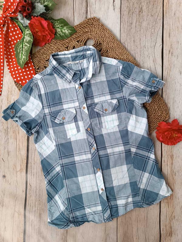 79💥очень легкая фирменная рубашка из натуральной ткани, ответвляющее положение идеальное, спереди микро щетка, последнее фото 📏13/14 лет, длина 64, пог 48