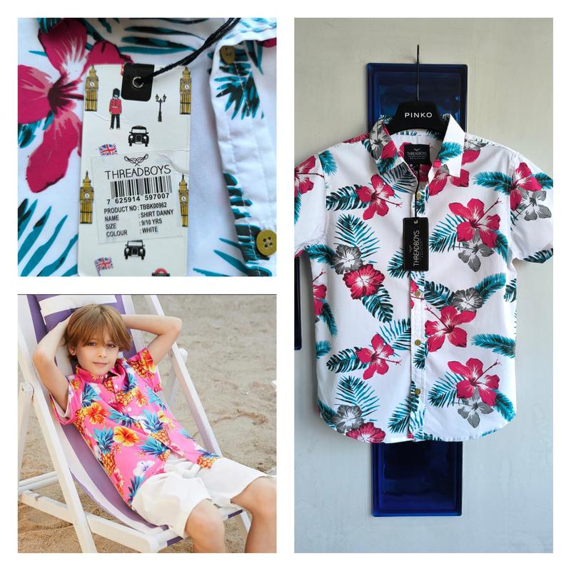Фірмова літня рубашка пляжна гавайка, нова з біркою. Зручний прямий крій, скруглений низ, склад: 100% полірована бавовна якість! По бірці на 9-10 років, звіряйтесь з замірами. Довжина 59 см Плечі 36,5 см НОГ 42,5 см Напвіобхват по низу 42,5 см Рукав довжина від плеча 16 см Рукав напівобхват 14 см