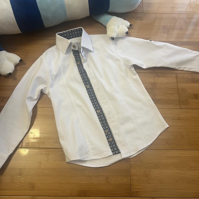 Рубашка як нова ,одягнена 2 рази ,на фотосесію ,та свято в садочку . Якість на найвищому рівні,дуже приємна на дотик ,. Трошки великомірить як на 98. Заміри є в додаткових фото.
