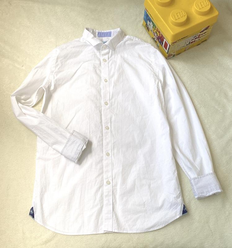 Фірмова сорочка , біла . Бавовняна в ідеальному стані . Без дефектів Довжина -69 см Ширина -45 см Рукава -60 см Плечі -38 см