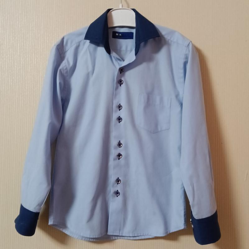 Стильная качественная детская рубашка. Классно подходит как под джинсы, так и под брюки. Ткань: 80% хлопок, 20% полиэстер, очень мягкая. Замеры: длина - 50см, плечи - 33см, ПОГ - 35см, рукав - 42см