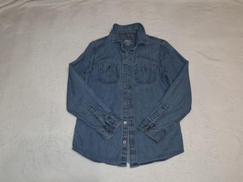 Сорочка джинсова Rebel by Primark. Размер 134, 8-9р. длина 55 см, ширина 37 см, ширина плечей 32 см, длина рукава 48,5 см.