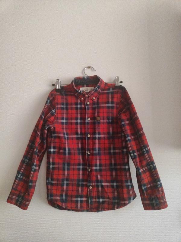Классная рубашка, натуральный состав, модный дизайн. Размер 8 (128) Замеры: рукав от плеча 47 см, плечо 9 см, рукав по внутреннему шву 37 см, ширина 37,5 см, длина по спинке 53,5 см