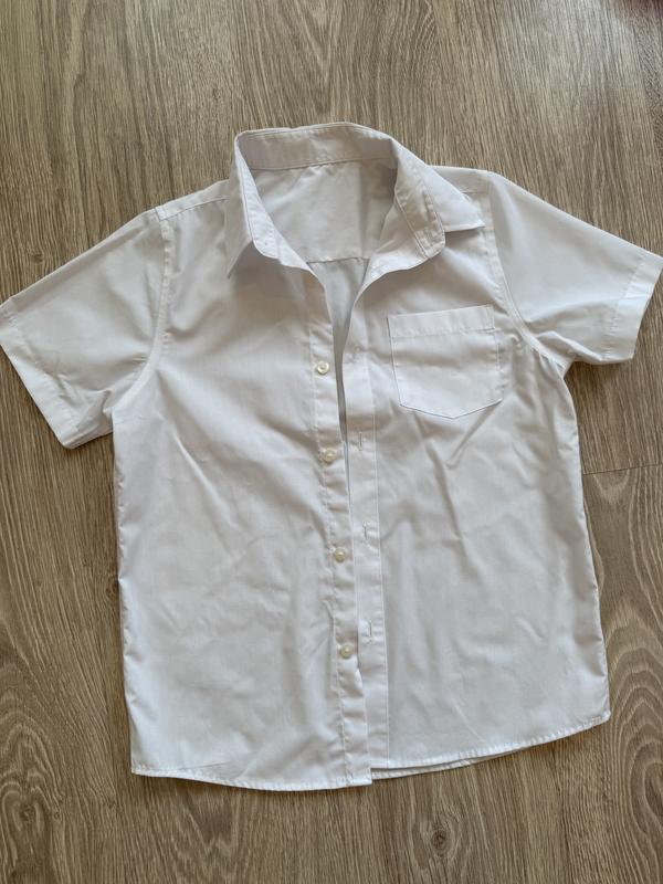 Сорочка на дівчинку або хлопчика. На зріст десь 130 (дивиться заміри). Є кишеня, короткий рукав. Довжина виробу 54 см. Пів обхват грудей 40 см. Пів обхват талії 40 см. Рукав 19 см.