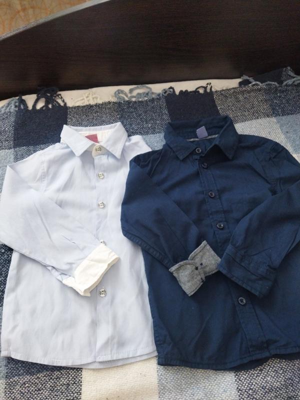 Голубая рубашка в идеальном состоянии замеры длина от плеча 37см, длина рукава от плеча 34см, полуобхрудей 27см. ткань полиэстер ****" Синяя рубашка замеры: длина от плеча 37см, длина рукава от плеча 34см в отключенном формате, полуобхрудей 30см.ткань котон Цена указана за 2
