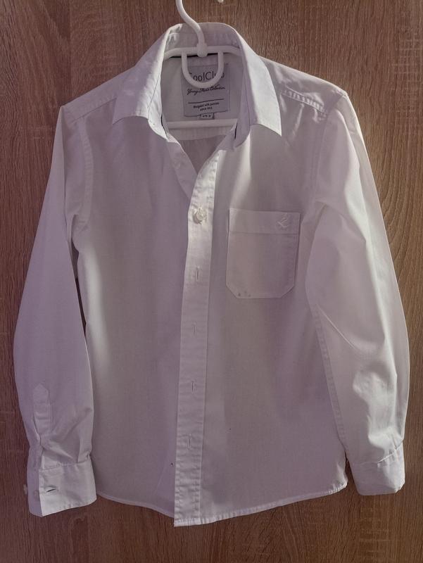 рубашка белая, р. 134-140 рукав -46 ширина в плечах -32 ширина под ручками -39 длина-52
