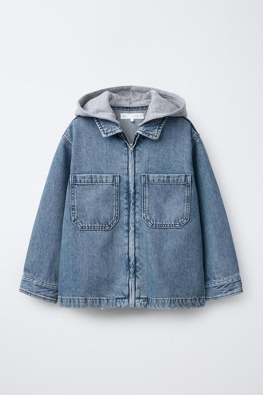 ДЖИНСОВАЯ РУБАШКА СО СЪЕМНЫМ КАПЮШОНОМ ZARA 4110/701/427 на 13-14 лет на р.164. Джинсовая рубашка со съемным флисовым капюшоном на пуговицах и длинными рукавами. Застежка на молнию спереди и накладные карманы спереди. СОСТАВ. КУРТКА. 100% хлопок. КАПЮШОН. 8% вискоза, 69% хлопок, 23% полиэстер.