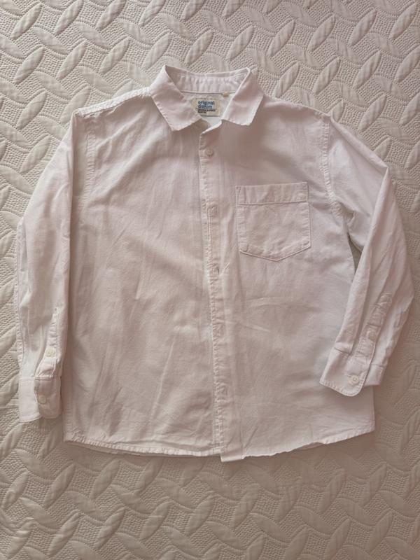 👔 Дитяча біла сорочка Original Denim Розмір: 7-8р Класична сорочка з довгим рукавом, колір білий, тканина приємна до тіла. Ідеальний варіант для школи, свята чи фотосесії. ✨ Стан: дуже хороший, лише маленька майже непомітна крапочка ззаду (див. останнє фото). В іншому — без дефектів, виглядає як нова. Довжина 50см Довжина рукава 40см Ширина плечей 34см Пог 39см