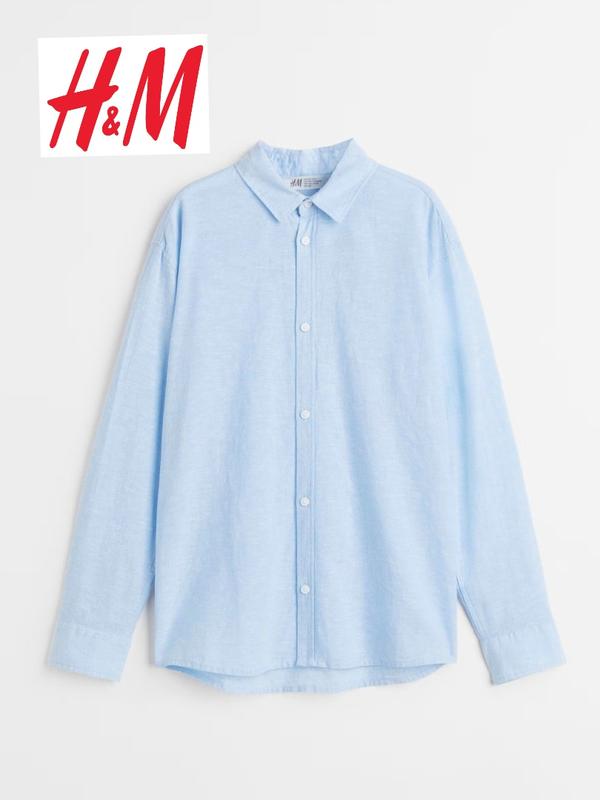 Новая стильная голубая льняная рубашка, лен, рубашка h&m 12-13 лет