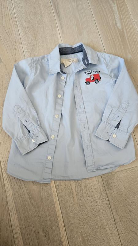 голубая хлопковая рубашка, длина рукава 32см, длина по спинке 44см, объем талии 64см.