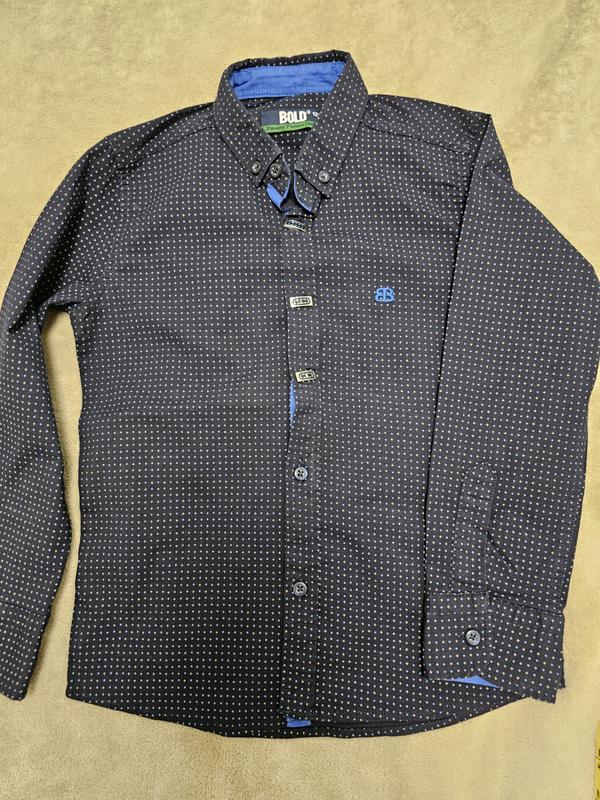 Рубашка для парня темно синего цвета, по качеству плотный хлопок со стрейчем, хорошо держит форму. состояние идеально, без нюансов, замеры на фото